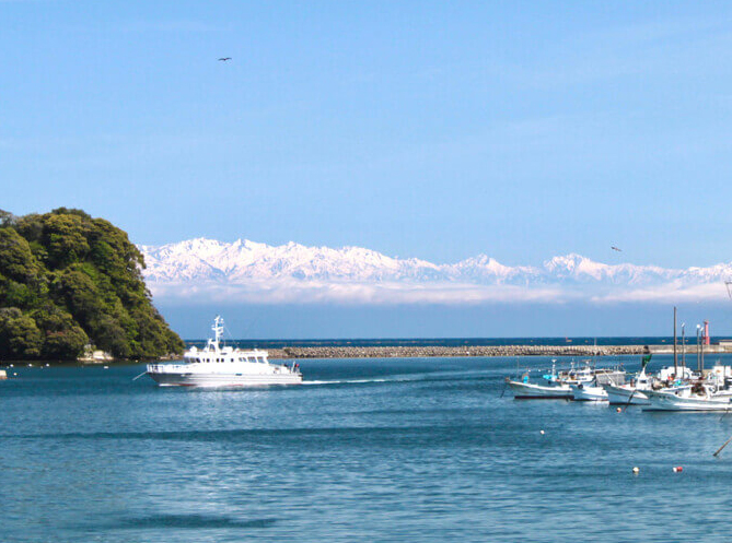 富山湾に面する宇出津では、湾越しに雄大なアルプス連峰を眺めることが出来ます(気象により異なります。冬場が特に綺麗です)